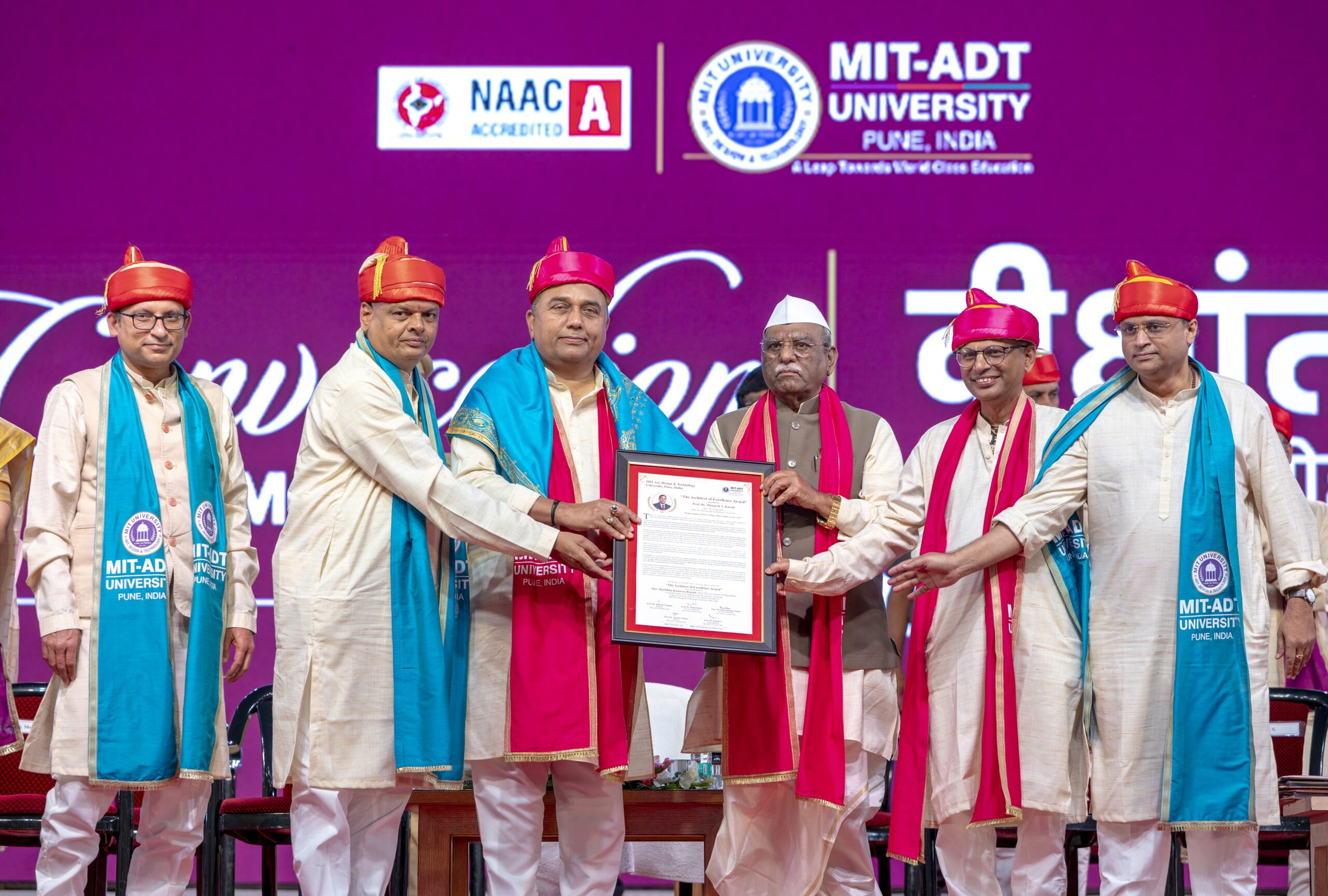 श्री रामानन रामनाथन को विज्ञान एवं प्रौद्योगिकी के क्षेत्र में उनके योगदान के लिए एमआईटी एडीटी विश्वविद्यालय द्वारा ‘डॉक्टर ऑफ साइंस’ (डी.एससी.) की मानद उपाधि से सम्मानित किया गया। ‘ग्लास मैन ऑफ इंडिया’ के नाम से विख्यात श्री सुभाष त्यागी को उनके औद्योगिक नेतृत्व के लिए ‘डॉक्टर ऑफ लेटर्स’ (डी.लिट.) की मानद उपाधि से सम्मानित किया गया। इसके साथ ही, पूर्व छात्र संघ द्वारा डॉ. मंगेश कराड को ‘आर्किटेक्ट ऑफ एक्सीलेंस’ पुरस्कार से सम्मानित किया गया।