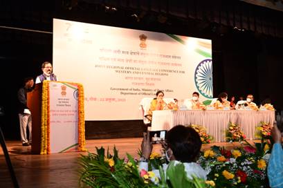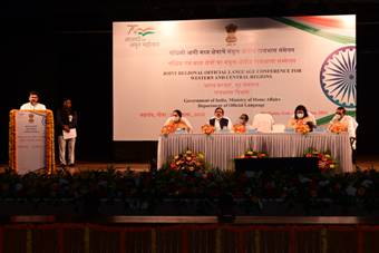 राजभाषा विभाग, गृह मंत्रालय, भारत सरकार द्वारा दिनांक 22 अक्तूबर 2021 को यहां रवींद्र भवन, मडगांव गोवा में पश्चिम एवं मध्य क्षेत्र में स्थित केंद्र सरकार के कार्यालयों, बैंकों एवं उपक्रमों इत्यादि के लिए संयुक्त क्षेत्रीय राजभाषा सम्मेलन एवं पुरस्कार वितरण समारोह का आयोजन किया गया। समारोह में माननीय गृह राज्य मंत्री श्री अजय कुमार मिश्रा, अध्यक्ष तथा माननीय पत्तन, पोत परिवहन और जलमार्ग एवं पर्यटन राज्य मंत्री श्रीयुत श्रीपाद येसो नाईक मुख्य अतिथि के रूप में मौजूद रहे। इस अवसर पर मुख्य अतिथि श्रीयुत श्रीपाद येसो नाईक एवं माननीय गृह राज्य मंत्री श्री अजय कुमार मिश्रा के कर-कमलों से केंद्र सरकार के कार्यालयों, बैंकों एवं उपक्रमों को विभिन्न श्रेणियों के अंतर्गत राजभाषा में उत्कृष्ट कार्य करने हेतु पुरस्कार प्रदान किए गए। कार्यक्रम में राजभाषा विभाग की सचिव सुश्री अंशुली आर्या व अन्य वरिष्ठ अधिकारीगण भी उपस्थित थे।