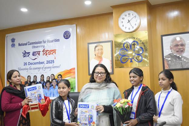 राष्ट्रीय अल्पसंख्यक आयोग (एनसीएम) ने आज अपने कार्यालय परिसर में वीर बाल दिवस का आयोजन किया। इसका उद्देश्य नागरिकों, विशेषकर युवा पीढ़ी को साहिबजादों के असाधारण साहस और सर्वोच्च बलिदान के बारे में सूचित और शिक्षित करना था। साथ ही, भारत के इतिहास के युवा नायकों के अदम्य साहस, बलिदान और शौर्य का सम्मान और स्मरण करना भी था ।